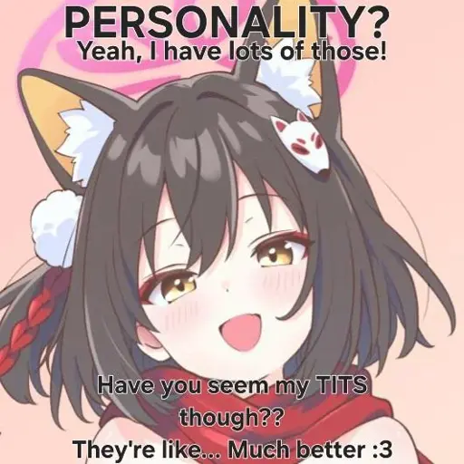 kittenzrulz123@lemmy.dbzer0.com to Femcel Memes@lemmy.blahaj.zoneEnglish · 7 days agoJk no I'm not :3 lemmy.dbzer0.comimagemessage-square17fedilinkarrow-up1225arrow-down12