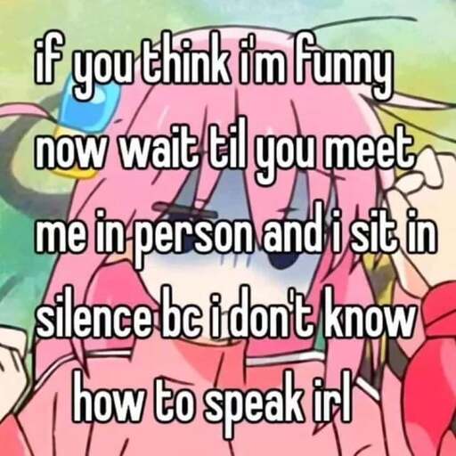 TotallynotJessica@lemmy.blahaj.zoneM to Femcel Memes@lemmy.blahaj.zoneEnglish · 4 days agoI should probably read Bocchi one of these days lemmy.blahaj.zoneimagemessage-square4fedilinkarrow-up1232arrow-down10