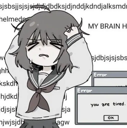 minus-squareunexposedhazard@discuss.tchncs.delinkfedilinkEnglisharrow-up13·edit-22 months agoYou forgot the “Error: You are tired.”