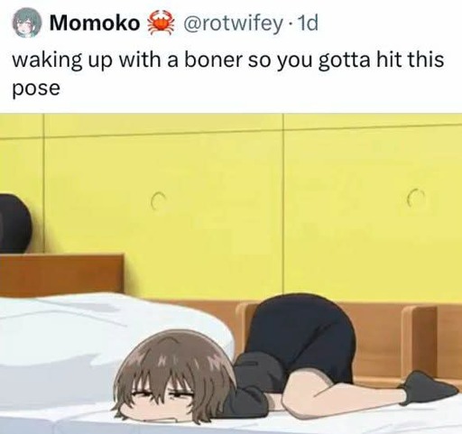 Depending your work, you shouldn’t do it with a boner, that’s why it’s nsfw