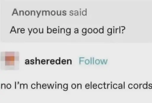 minus-squareobsessief@piefed.blahaj.zonelinkfedilinkEnglisharrow-up7·25 days agoyummy, electrical cords! :3
