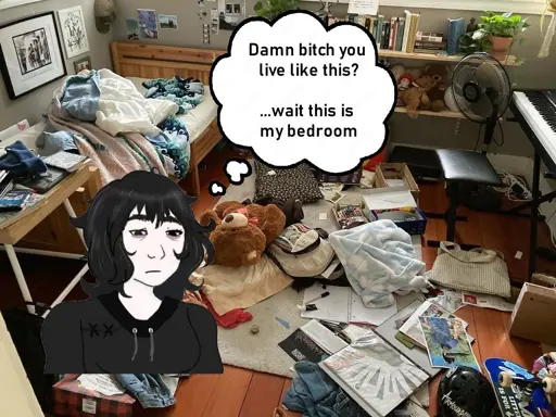 minus-squareNihilsineNefas@slrpnk.netlinkfedilinkEnglisharrow-up2·3 days agoPosting this with an image of a room that’s only messy and not actually dirty in any way. I’ve seen things irl that were worse than the memes of desks made of 40% cig butts and 60% cans of unknown volume or fluid