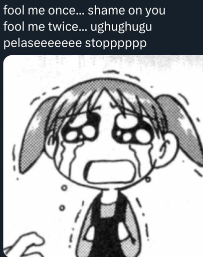 minus-squareTheTechnician27@lemmy.worldlinkfedilinkEnglisharrow-up11·25 days ago How many times do I need to be fooled before I turn into Nanao from Robot Alchemic Drive?