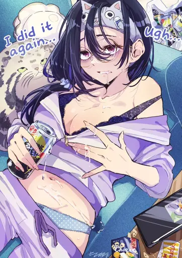 She’s just a femcel otaku who spilled her drink while lazing about. The joke of her character is that she is attractive and potentially competent at her job, but is still a shy nerd.